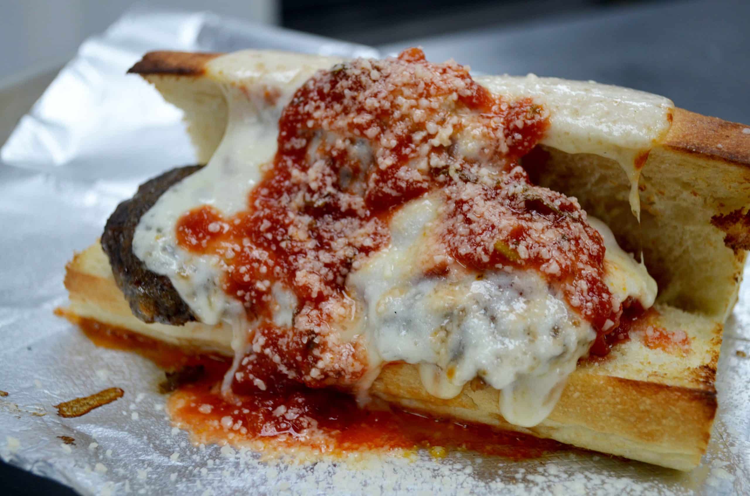Hand rolled meatballs, mozzarella, and marinara sauce